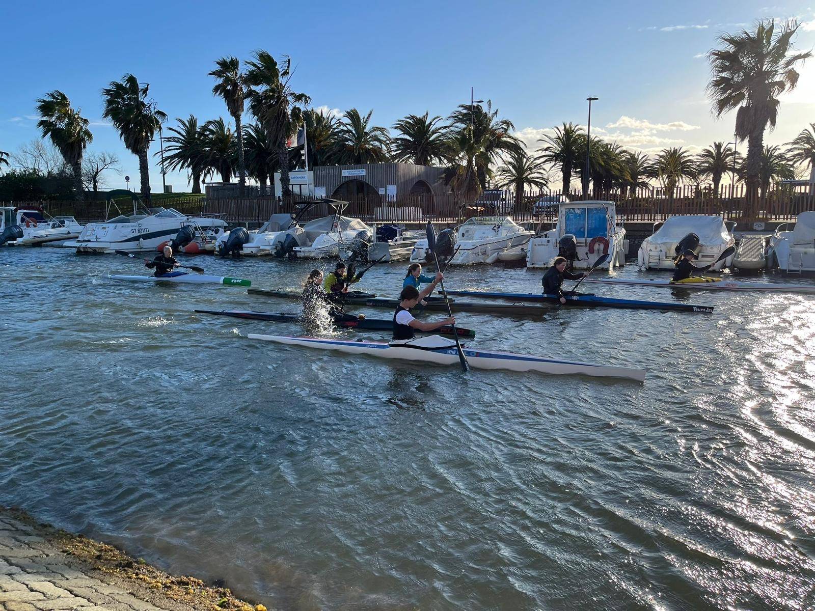 Wey paddlers joined with Banbury Canoe Club on the half term trip to Sete (France) for some training led by Pete Gorman. 10 Wey club members (Izzy and parents, Eira and parents, Joshie and parents and Graham Holmes) joined about 20 members from Banbury for a mixture of paddling, crepes and much post training refuelling at McDonalds (known for its French cuisine!) - oh and some proper nice french food and wine. The juniors paddled K1 and the seniors did a mix of K1 and K2 combinations as the mood took them.